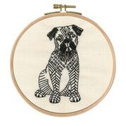 Kit contains wooden embroidery hoop (can be used for working and framing), printed calico fabric, embroidery chart with stitch diagrams, needle, DMC stranded cotton, sharp needle